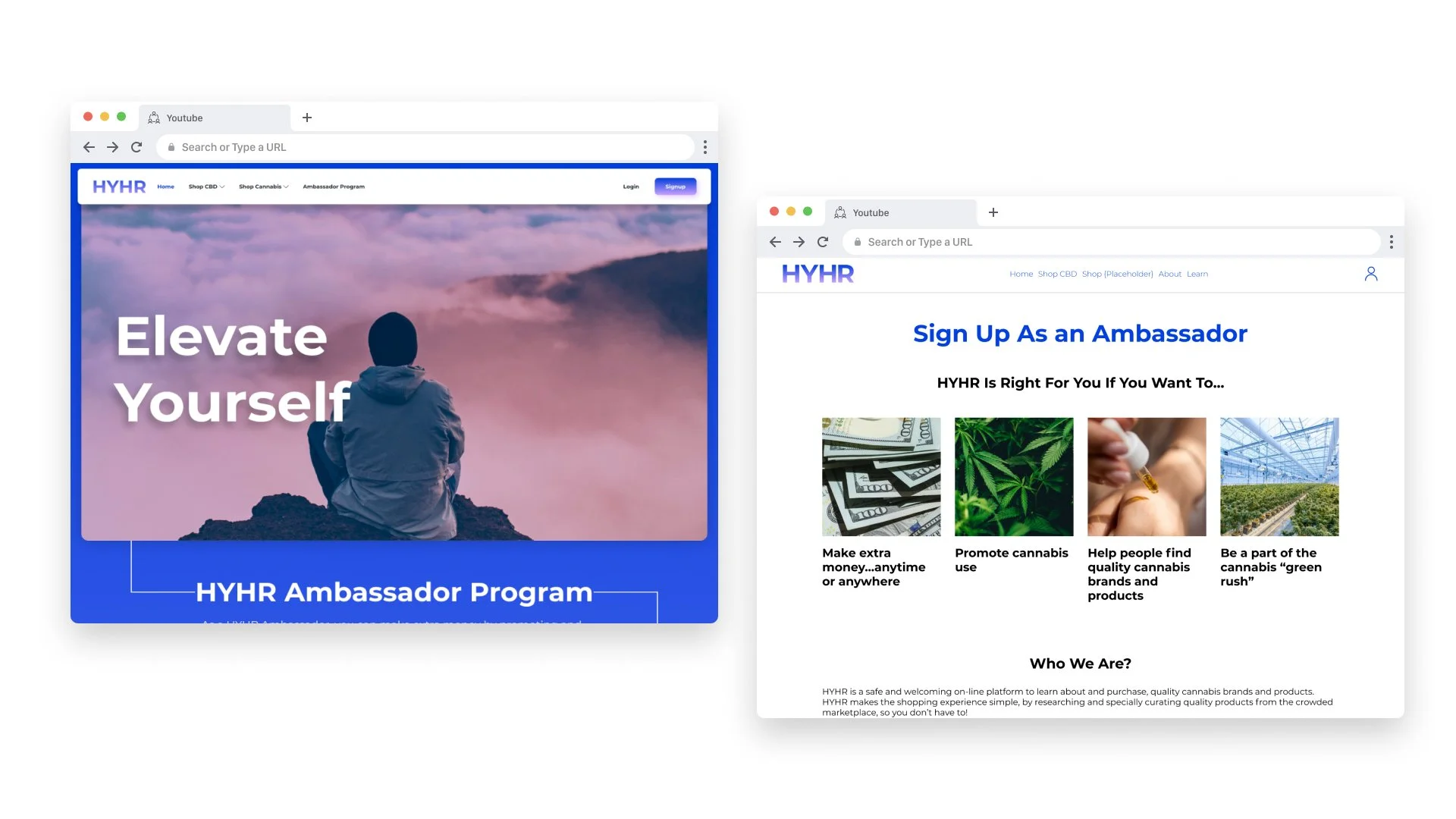 The design process for HYHR was deeply integrated with business strategy, technical feasibility, and compliance considerations, ensuring that the platform could scale while adhering to industry regulations. The challenge was to create a customizable, multi-level eCommerce solution that enabled users to become independent cannabis distributors while maintaining a cohesive brand identity.