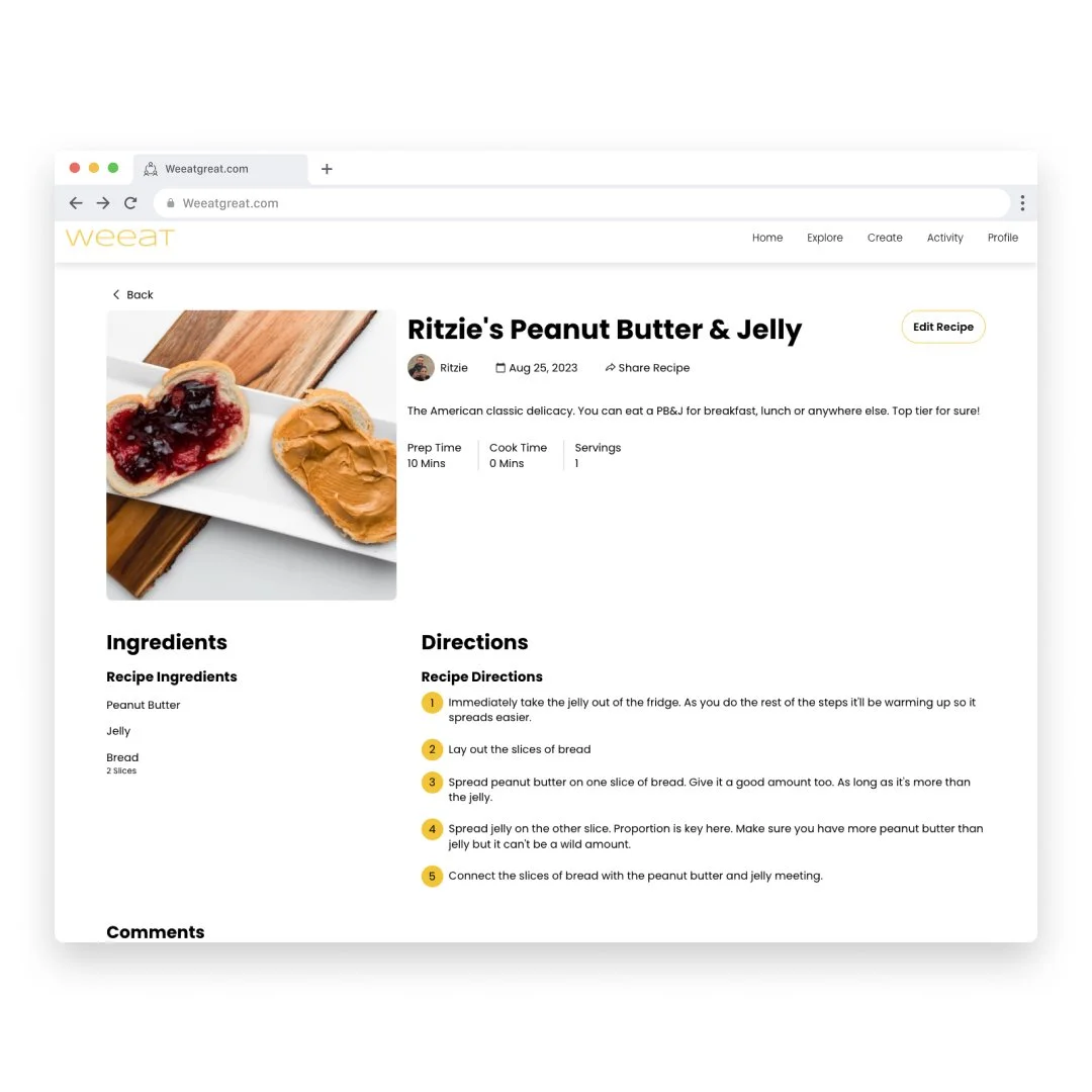 Weeat originally launched as a mobile application, but user feedback revealed that sharing recipes was difficult without a web-based experience. To improve accessibility and ease of sharing, Weeat transitioned into a responsive web application, allowing users to browse, post, and share recipes seamlessly across devices.